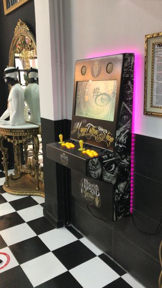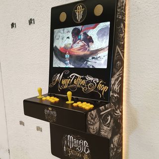 Máquina recreativa estilo bartop con un diseño retro y llamativo. Ideal para los amantes de los videojuegos clásicos. Se venden por encargo. - Diseño de sobremesa compacto. - Panel de control con joysticks y botones.