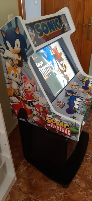 Máquina recreativa Bartop temática de Sonic para dos jugadores. Presenta un diseño vibrante con los personajes Sonic y Tails. - Dos joysticks y múltiples botones de control. - Gráficos coloridos de Sonic. - Diseño de sobremesa. Esta puesta sobre un mueble atornillada . Se le a despegado el U-molding aunque en las fotos se ve pegado . Es pegarlo otra vez y falta colocar tapa trasera, por lo demas funcional lleva un pc con coinops 500gb ssd . Preguntar dudas solo en mano
