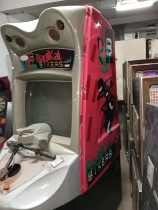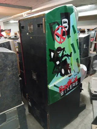 Plasticos en buen estado , mueble ok , completa , pero no está funcionando . Posibilidad de envío o transporte Máquina recreativa Radikal Bikers con un diseño llamativo. - Gráficos verdes y negros. - Ilustración de personaje en moto. - Texto Radikal BIKERS en la parte inferior.
