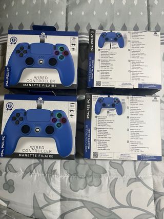 Pack de cuatro mandos de videojuegos Freaks en color azul. - Compatibles con PS4, PS3 y PC. - Conexión por cable. - Jack de 3.5mm.