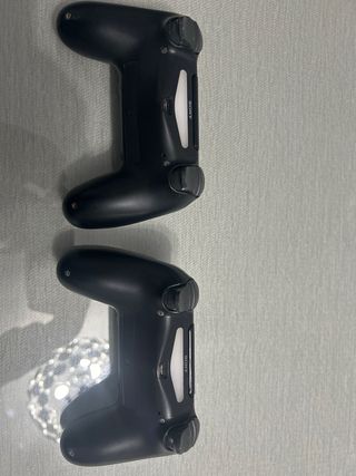 Dos mandos de PlayStation 4 en color negro. - Diseño ergonómico. - Botones de acción y direccionales. - Sticks analógicos. - Panel táctil. - Puerto de audio.