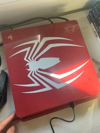 Consola PlayStation 4 con un diseño exclusivo inspirado en Spider-Man. 2 Mandos oficiales de PS4(van perfectamente) 4 Juegos La play funciona muy bien, esta muy cuidada.