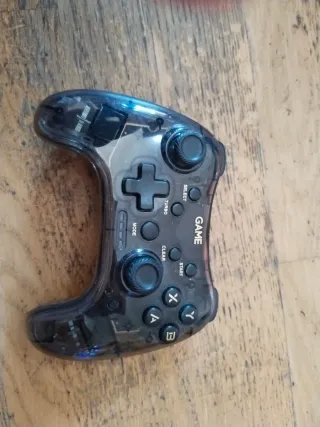 Mando de control para videojuegos con diseño transparente. - Botones de acción A, B, X, Y. - Sticks analógicos. - Cruceta direccional. - Botones Select, Start, Turbo y Mode.