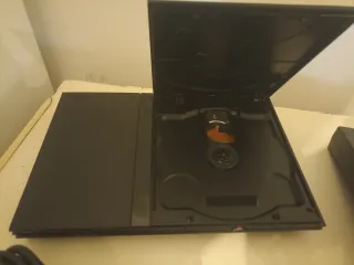 Consola PlayStation 2 en color negro, ideal para revivir tus juegos favoritos. Incluye todos los accesorios necesarios para empezar a jugar. - Mando original. - Cableado y adaptadores de corriente.
