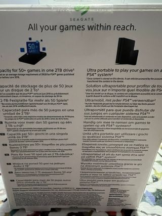 Disco duro externo Seagate de 2TB, diseñado como almacenamiento adicional para sistemas PlayStation 4. - Capacidad: 2TB - Diseñado para PS4 - Licencia oficial PlayStation