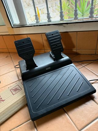 Juego de volante, palanca y pedales para simulador de agricultura. - Volante con agarres ergonómicos. - Palanca de mando con botones. - Pedales de acelerador y freno.