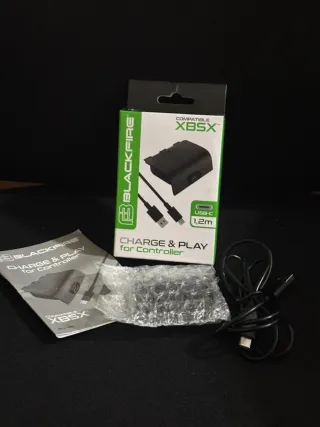 Vendo kit Charge & Play para mando Xbox de la marca Blackfire, compatible con Xbox Series X / Series S. Ideal para cargar el mando mientras juegas, sin necesidad de pilas. Incluye: Batería recargable Cable USB-C (1,2m) Manual Caja original Artículo nuevo o apenas usado, en perfecto estado. Solución práctica y cómoda para no quedarte sin batería en mitad de la partida.Precio negociable Hago envíos por Wallapop y también entrega en mano. Cualquier duda, preguntarme sin compromiso.