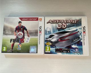 Videojuego FIFA 15 Legacy Edition y Juego de carreras Asphalt 3D para Nintendo 3DS. - Incluye los juegos, las carátulas y los manuales (todo lo que hay en las fotos). - Compatible con nintendo 3DS y 2DS. - En perfecto estado, como nuevos. - También los puedo vender por separado. Tengo mas juegos en mi perfil, puedo hacer packs.