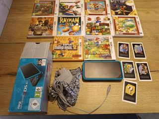 New 2DS XL en perfecto estado. Incluye juegos de DS y 3DS (preguntar) Incluye funda protectora (azul) y funda de viaje (rosa con hueco para cables y juegos) Caja y papeles originales Stycks extras Protectores de pantalla puestos y varios extras Agarre para jugar más cómodamente. Cargador original Se hacen envios.