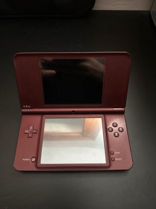 Consola Nintendo DSi XL en color granate. Envío con cargador. Funciona perfecta excepto por un pequeño trozo inferior de la pantalla táctil. No afecta en jugabilidad en la mayoria de juegos que yo jugaba (la he estado usando hasta hace poco, que me he comprado una new 2ds).