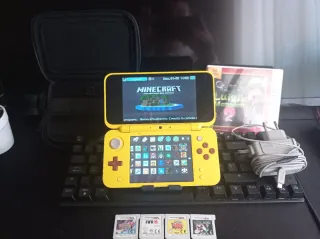 Consola portátil Nintendo 2DS XL edición especial de pikachu liberada. Incluye 4 juegos Minecraft , Luigi's Mansion 2,Pokémon Y y FIFA 15 además de su cargador y funda. - Cargador original En perfecto estado (SIN FALLOS) si no sabéis añadir juegos yo añadire.