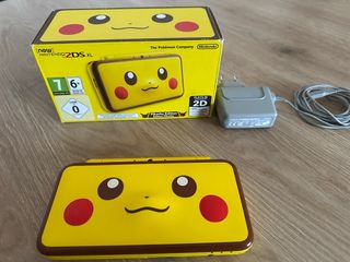 Consola portátil Nintendo 2DS XL con un diseño especial de Pikachu. Incluye su caja original y cargador. - Diseño exclusivo de Pikachu. - Incluye caja original. - Incluye cargador de corriente. - Esta en muy buen estado estetico y funciona todo de maravilla. -La caja esta vacía. No contiene los cartones interiores, ni manuales pero la caja esta en buen estado. -En la parte derecha de la bisagra tiene una pequeña marca ( es común en las new 2ds xl). No es por golpe ni nada, es de abrir la pantalla. Se puede apreciar en la ultima foto. -NO incluye el juego. SOLO HOY A 250!
