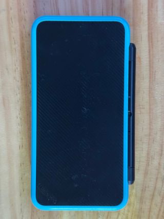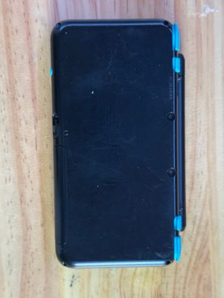 Consola portátil Nintendo New 2DS XL en llamativos colores negro y azul. Incluye lápiz táctil. - Diseño plegable y compacto. - Con estuche y lapiz - Lector de tarjetas de juegos.