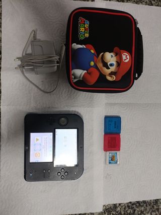 Nintendo 2DS Azul y negra + funda + 3 juegos.