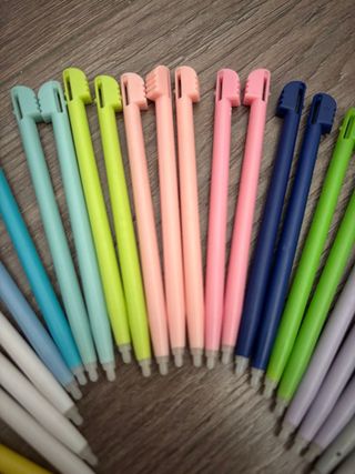 Conjunto de punteros de repuesto para consolas Nintendo DS, 2DS y DSL. Vienen en varios colores pastel y azul marino. cada uno 0,50 los 26, 8€ - Punteros nuevos. - Colores disponibles: azul claro, verde lima, rosa, azul marino y verde. - Diseño ergonómico.