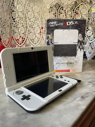 Consola portátil New Nintendo 3DS XL, edición especial Fire Emblem Fates. - Diseño en color blanco con detalles temáticos. - Pantalla XL para una experiencia de juego inmersiva. Está en perfectas condiciones. Solo para coleccionistas