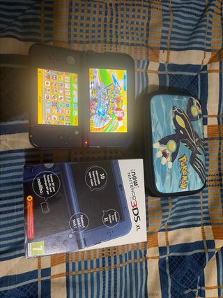 Consola Nintendo 3DS XL en color azul , lista para horas de diversión. - Incluye más de 500 juegos precargados. - Modelo new 3ds xl funda metálica azul cargador se puede conectar a internet y se actualiza sola pantallas IPS 128 gb funda pokemon