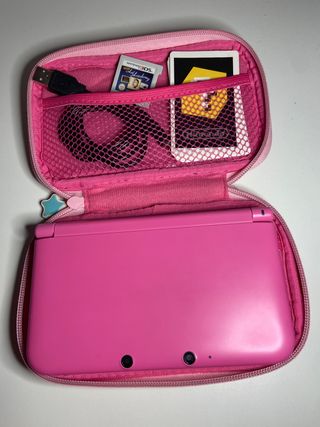 Nintendo 3DS XL Rosa Incluye: • Nintendo 3DS XL en color rosa • Cable cargador USB • 6 tarjetas de JUEGOS RA • Funda Nintendo + 2 compartimentos • Juego “ART ACADEMY” tarjeta Nintendo (Todo está en perfectas condiciones como recién sacado de la caja. Mandar mensaje para cualquier pregunta)
