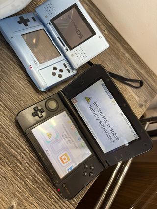 Se venden dos consolas portátiles Nintendo, una 3DS XL y una Nintendo DS. La nintendo 3ds XL Funciona perfectamente como tal Pero no entiendo por que no le cargan los juegos No los lee y un pequeño golpe Y la nintendo ds funciona bien se puede jugar pero tiene pequeños puntitos negros en la pantalla Lo vendo tal cual - Consola Nintendo 3DS XL. - Consola Nintendo DS.