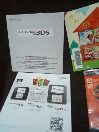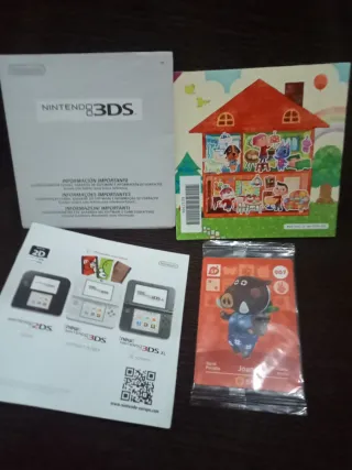 Manuales y folletos informativos para Nintendo 3DS, incluyendo contenido relacionado con Animal Crossing. - Incluye carta o cromo Joan 007 precintada,información importante y de contacto. - Folleto de clasificación por edades y garantía de software. - Guía para la referencia futura.