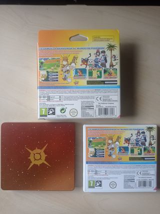 Edición especial del videojuego Pokémon Sol para Nintendo 3DS, versión española. Incluye el cartucho original, caja con manuales completos, embalaje de edición limitada y caja steelbook limitada. En perfecto estado de conservación, sin desperfectos. Juego funcional y con partida guardada. - Juego Pokémon Sol. - Steelbook metálico con diseño exclusivo. - Edición especial.