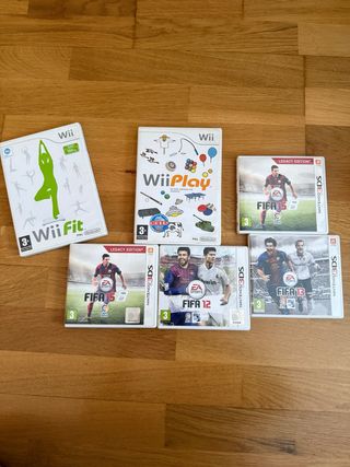 Conjunto de videojuegos para Nintendo Wii y Nintendo 3DS. - Wii Fit (Wii) - Wii Play (Wii) - FIFA 15 Legacy Edition (Nintendo 3DS) - FIFA 12 (Nintendo 3DS) - FIFA 13 (Nintendo 3DS)