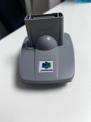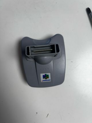 Adaptador Transfer Pak original de Nintendo 64. Permite conectar otros dispositivos a tu consola. - Color gris. - Logo de Nintendo 64 en la parte frontal.