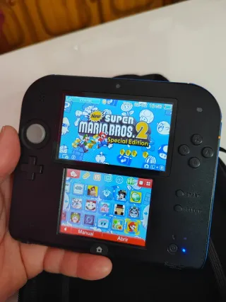 Nintendo 2ds negra y azul, en buen estado, funciona perfectamente, no tiene marcas reseñables en la carcasa, en la pantalla superior tiene un par de arañazos leves que no se ven cuando está encendida. Incluye funda, cargador, lápiz y tarjeta de 16Gb. Incluye varios juegos digitales con posibilidad de instalar alguno más, es cuestión de hablarlo. Se entrega en mano en Espartinas y alrededores o en Huelva capital. Para más info contactar por el chat.