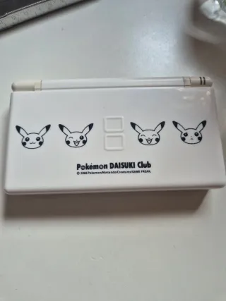 Consola Nintendo DS Raya negra en la pantalla. No funciona bien la + . no es daisuki original No incluye lapiz. Incluye cargador. Se puede reparar. - Diseño blanco con motivos de Pikachu. - Incluye el juego Pokémon Daisuki Club.