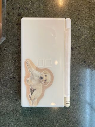 Consola portátil Nintendo DS Lite en color blanco. Incluye varios juegos y bolso de transporte. El puntero táctil no es el original.