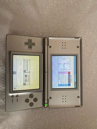 Consola portátil Nintendo DS Lite en color plata. Incluye su cargador con su caja. - Pantalla superior e inferior funcionando. - Botones de control funcionando. - Pantallas sin arañazos. - Carcasa perfecta estéticamente. No se aceptan devoluciones de consolas o videojuegos( posibles cambiazos por eso se vende para piezas o reparar, aunque funcione perfectamente).