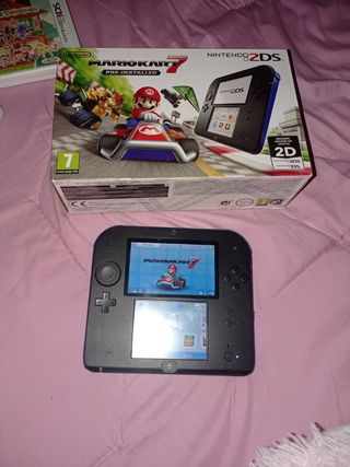 Nintendo 2 ds azul y negra lleva juego de Mario cars más dos juegos a parte
