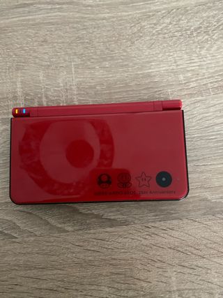 Consola Nintendo DS Lite edición especial Super Mario Bros. 25th Anniversary. - Color rojo brillante. - Diseño conmemorativo. - Incluye stylus.