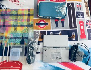 Consola portátil Nintendo DS Lite en color plata. Incluye accesorios. - Dos lápices táctiles. - Funda de transporte con desgaste. - Cargador. - Estuche para cartuchos. - 4 juegos como nuevos. - Cartucho especial con tarjeta SD con varios juegos dentro.