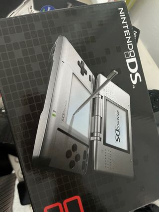 Consola portátil Nintendo DS Lite en color plata. Se vende para reparar o como repuestos. Bisagra rota y pantalla táctil no funcional (solo el tactil). Pantalla superior e inferior funcionando. Se vende sin cargador pero se envía cargada con batería - Pantalla superior con el logo del juego. - Pantalla inferior con menú de juego en español: Comenzar, Descarga DS, Seleccionar idioma. - Botones de control direccional y botones A, B, X, Y.