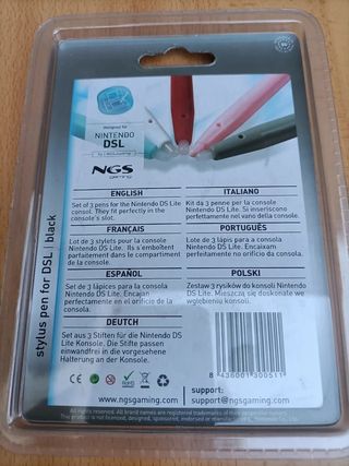 Set de 3 lápices para Nintendo DS Lite en color negro. A estrenar. En blister tal y como se ve las fotos. Fabricado por NGS.