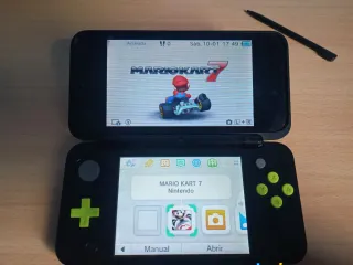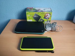 Consola portátil New Nintendo 2DS XL en color verde. Incluye su caja original, funda protectora y cargador. Además viene con el Mario Kart 7 preinstalado En perfectas condiciones