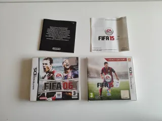 Lote compuesto por 3 juegos de la consola Nintendo ds y 3ds. FIFA 06, 14 (solo cartucho) y 15 legacy edition. Posibilidad de hacer pack con otros juegos de mi perfil. Realizó envíos, pero no por wallapop.