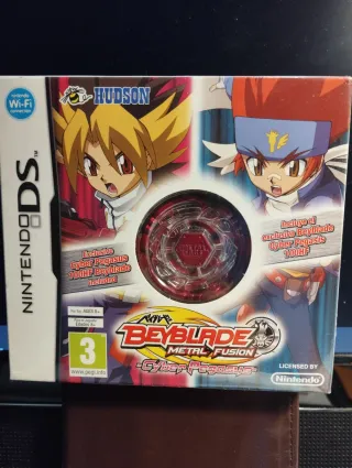 Videojuego Beyblade Metal Fusion para Nintendo DS, con el Beyblade exclusivo Cyber Pegasus 100HF incluido. - Incluye Beyblade Cyber Pegasus 100HF. - Para edades de 3 años en adelante. - Licenciado por Nintendo.
