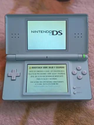 Consola portátil Nintendo DS en color plata. Se encuentra en perfectas condiciones, sin rayones en pantallas ni marcas en la consola. La bisagra está perfecta y el pen es original. - Pantalla superior e inferior en perfecto estado. - Botones de control direccional y de acción. - Ranura para cartuchos de juego. - Conector para auriculares. - Se incluye lo que se ve en las fotos.
