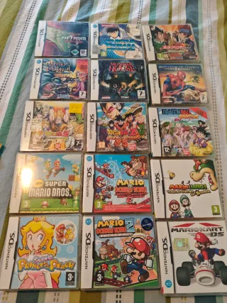 Lote de 12 videojuegos para Nintendo DS. Escucho ofertas por el lote completo. - Metroid Prime Hunters - Dragon Ball Z: Attack of the Saiyans - Super Mario Bros. - Mario & Luigi: Bowser's Inside Story - Dragon Ball Z: Goku's Legacy - Mario Kart DS - Monster House - Spider-Man: Battle for New York - Dragon Ball Z: Harukanaru Densetsu - Super Princess Peach - Mario & Luigi: Partners in Time - Mystery Dungeon