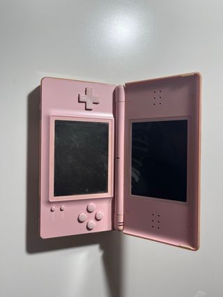 Consola portátil Nintendo DS en color rosa, funciona. - Diseño plegable. - Pantalla superior e inferior. -Con cargador original. -Tarjeta multijuegos incluida.