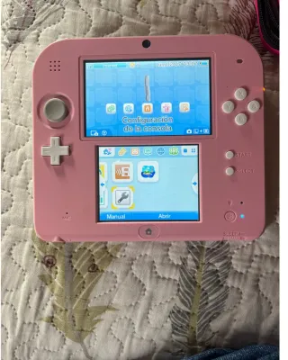 Consola portátil Nintendo 2DS en color rosa. - Pantalla superior e inferior. - Botones de control direccional y botones de acción. - Conexión Wi-Fi. - Ranura para tarjeta SD.