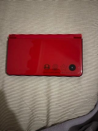 Consola portátil Nintendo DS XL en color rojo, conmemorativa del 25 aniversario de Super Mario Bros. - Diseño especial con iconos de Super Mario Bros. - Pantalla grande para una experiencia de juego inmersiva. - Incluye cargador - No trae lapiz