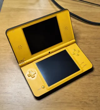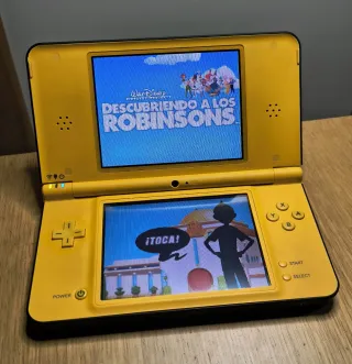 Consola portátil Nintendo DSi XL en color amarillo, muy cuidada, pantallas casi perfectas, marcas de uso imperceptibles. Todos los botones funcionando. Dos juegos de regalo, posibilidad de instalar mas. Sin stylus. Cargador original. Caja (no del mismo color de la consola) y manuales. Regalo R*4 gol*d, aunque no se si funciona, la consola no la necesita 😉.