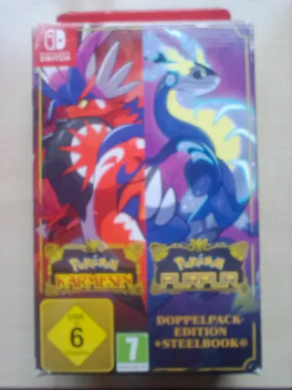 Edición especial Doppelpack de Pokémon Carmesí y Pokémon Púrpura para Nintendo Switch. Solo carátulas!!!! Para completar Tienen los precintos pero abierto por donde abren las carátulas. También cambio por consolas de Nintendo rotas a convenir, GB, gbc,GBA,GBA sp, ds,dsi,2ds,3ds....... - Incluye caja y caratulas de los juegos - caratula de Pokémon Carmesí. - carátula de Pokémon Púrpura. - no se incluyen los juegos - Clasificación PEGI 7.