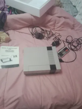 Consola clásica Nintendo NES en su caja original. Funciona perfectamente , la caja tiene un defecto en Un lado ver imágenes, tiene todas las solapas, el corcho blanco está en perfectas condiciones sin rotos ni desgaste. No incluye juego Solo venta en persona no hago envíos para este artículo. - Incluye la consola. - Un mando. - Fuente de alimentación. - Cable de antena. - Manual de instrucciones. - Caja original. - Corcho blanco.