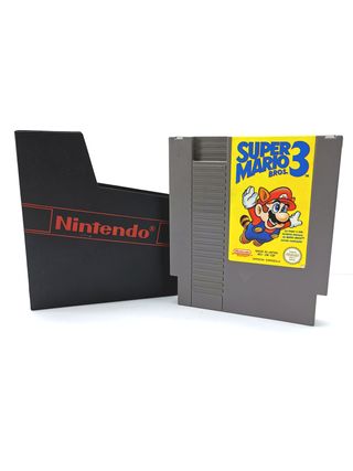 Cartucho del clásico juego Super Mario Bros. 3 para Nintendo Entertainment System. - Juego de plataformas. - Carcasa gris. - Etiqueta frontal con arte de Mario.