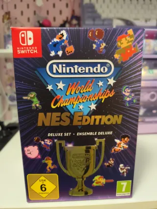 Edición Deluxe del juego Nintendo World Championships para NES. PRECINTADO - Incluye el juego. - Diseño retro con personajes icónicos de Nintendo. - Ideal para coleccionistas y fans de los clásicos de NES.