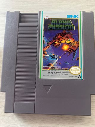 Cartucho de juego Alpha Mission para Nintendo Entertainment System (NES) versión PAL. - Licenciado por Nintendo. - Fabricado en Japón.